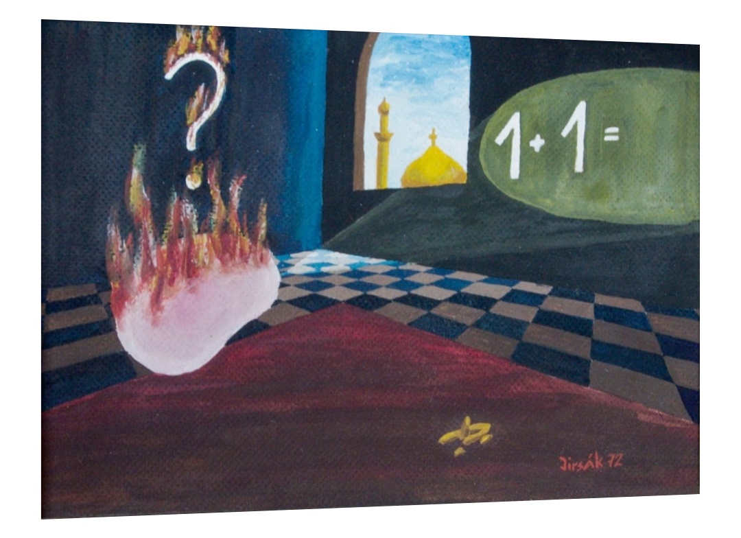 Tento malý obrázek jsem namaloval v době, kdy jsem se měl učit na zkoušku z matematiky na ČVUT. Je to „dvojče“ k obrázku Jednostranný pohled.