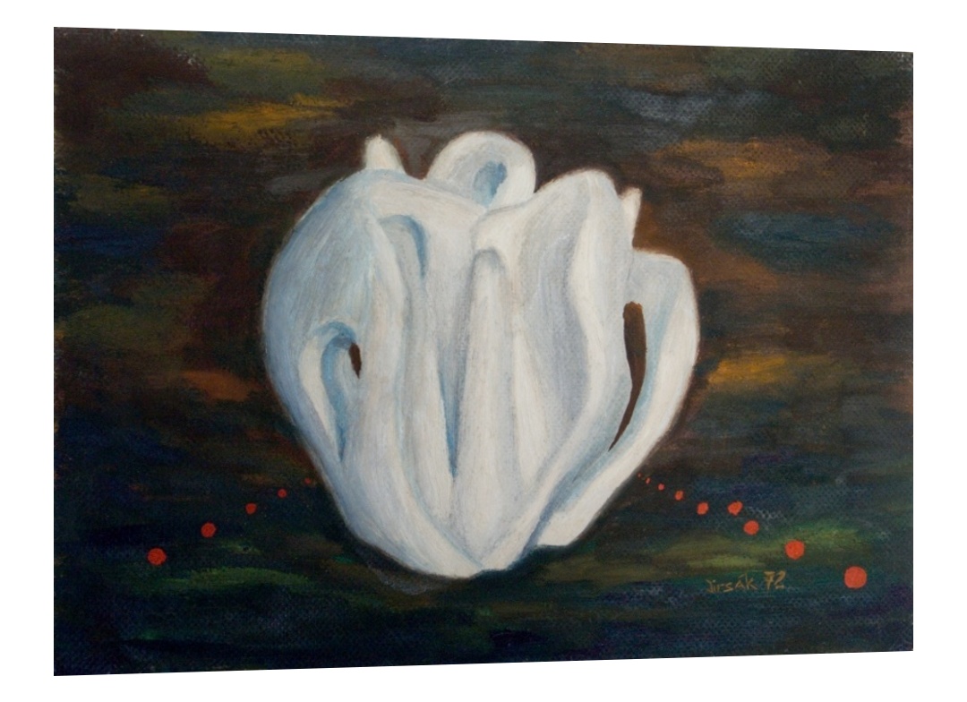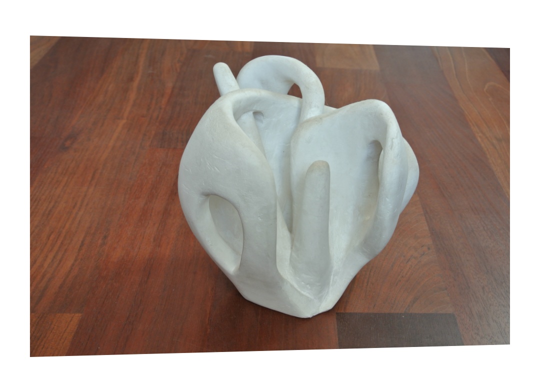 Obrázek sádrového květu, který vznikl podle mého sádrového květu vyřezaného z bloku odlité sádry.
